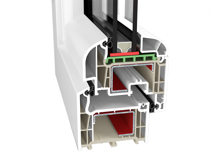 System profili Brügmann: AD i AD Arte o szerokości zabudowy 73 mm sprosta wysokim wymaganiom każdego użytkownika okien. Zastosowanie wysokiej jakości PCW ułatwia utrzymanie ich w czystości, oraz zapewnia długą żywotność profili. Pięciokomorowy system profili wraz z dwoma uszczelkami komorowymi, zgrzanymi w narożach, zapobiegają powstaniu mostków cieplnych, tym samym ograniczają straty energii w rezultacie zmniejszają wydatki ponoszone na ogrzewanie pomieszczeń. Duże komory wewnętrzne i kształtowniki ze stali ocynkowanej dodatkowo zapewniają doskonałą stabilność i niezawodne działanie okien.